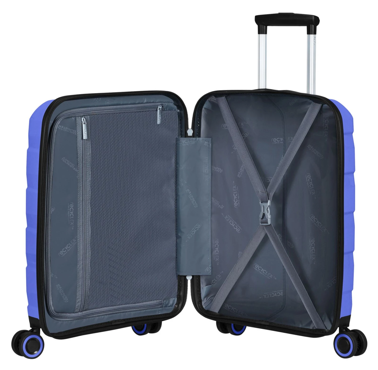 - Das American Tourister Logo ist gut sichtbar eingearbeitet