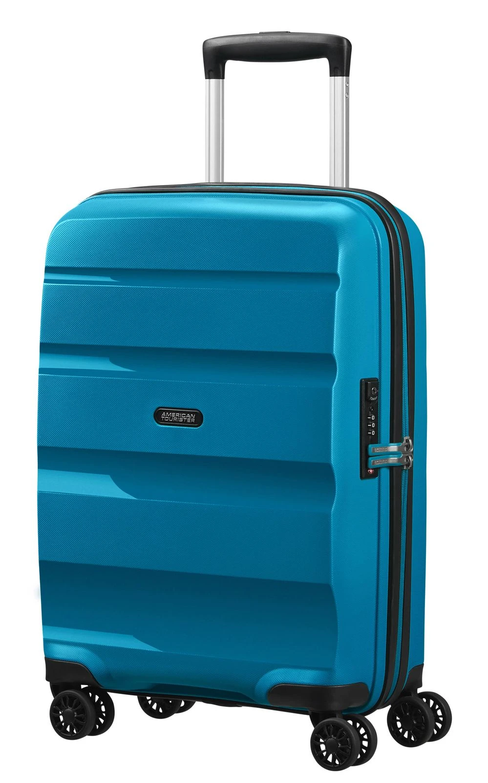 - Das American Tourister Logo ist gut sichtbar eingearbeitet