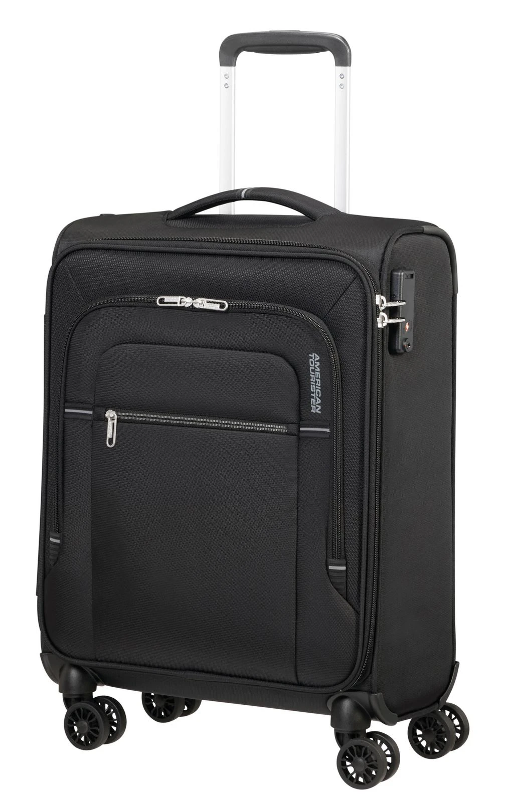 - Das American Tourister Logo ist gut sichtbar eingearbeitet