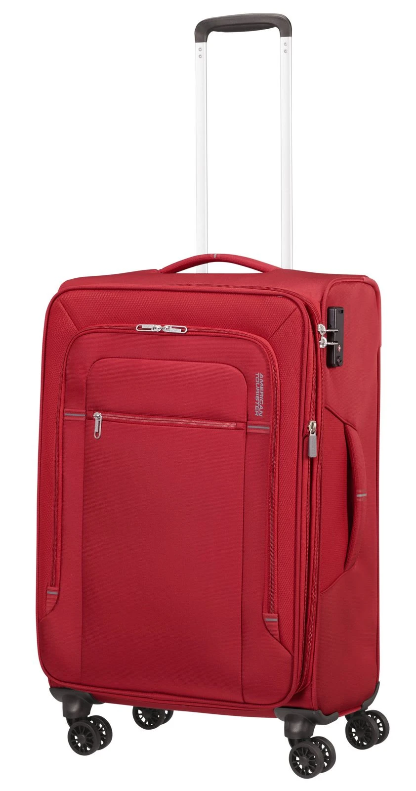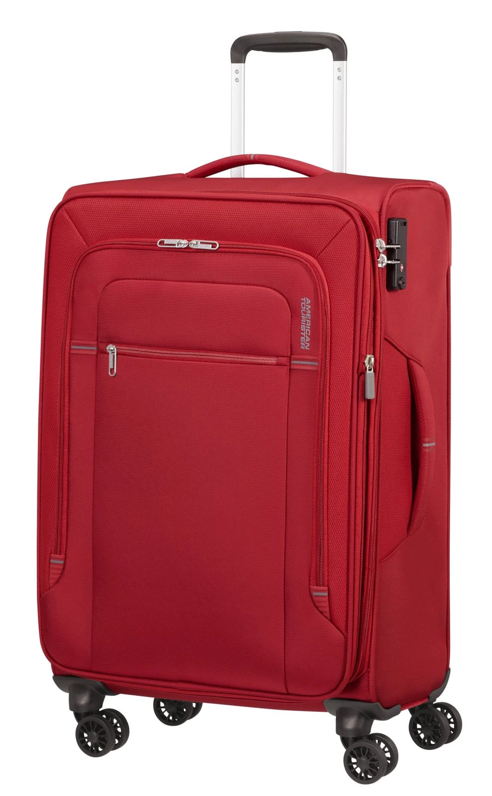 - Das American Tourister Logo ist gut sichtbar eingearbeitet