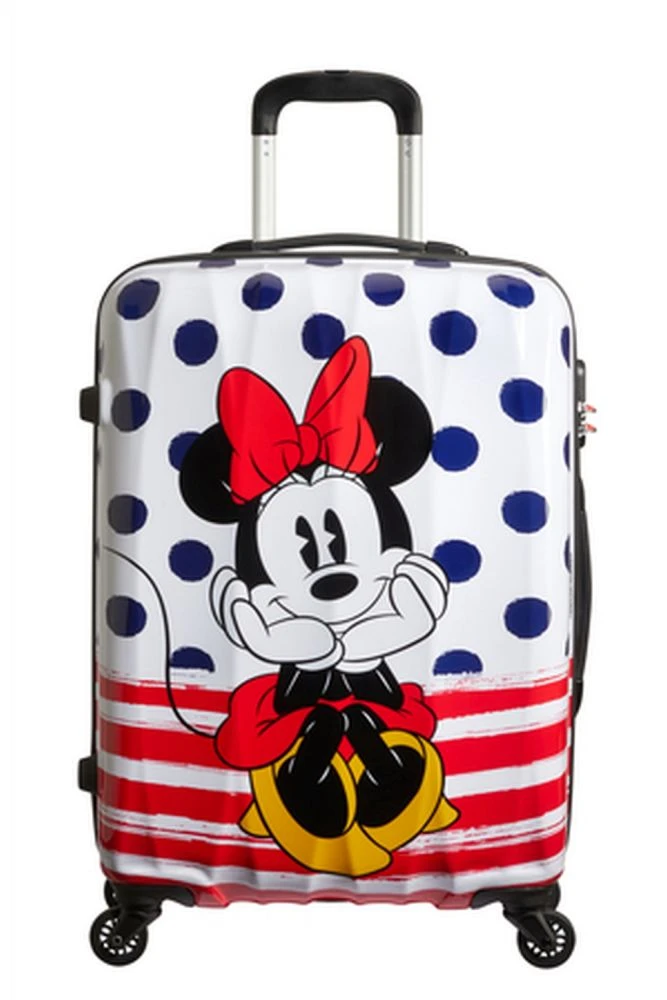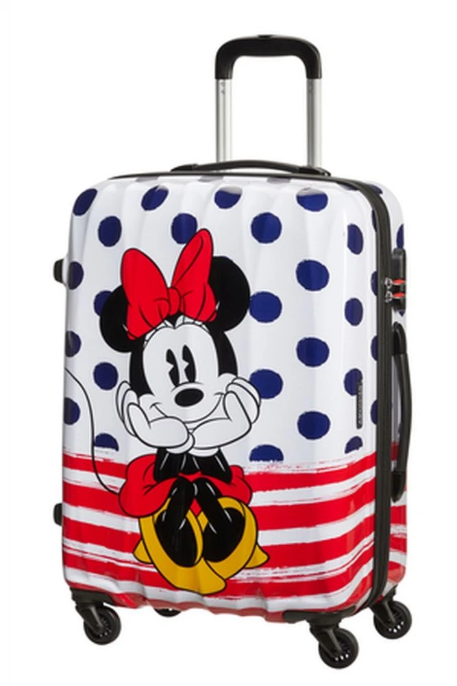Wenn Mickey oder Minnie doch etwas mehr zu transportieren haben, ist diese Größe wohl am besten geeignet. Mit unserem großen Trolley mit 4 Rollen seid Ihr für eine Reise von mind. 2 Wochen bestens gerüstet. Das feste Kombinationsschloss, die sanften Rollen und der angenehme Griff machen die Reise nicht nur stylish, sondern auch komfortabel. Das Innenfutter ist ebenfalls abgestimmt zum Disney Design. Wähle zwischen der retro-style Mickey Kollektion und den stylishen Minnie Dots.