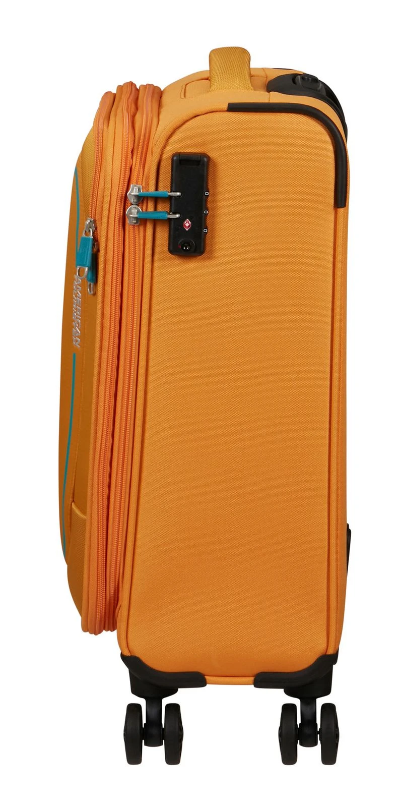 - Das American Tourister Logo ist gut sichtbar eingearbeitet