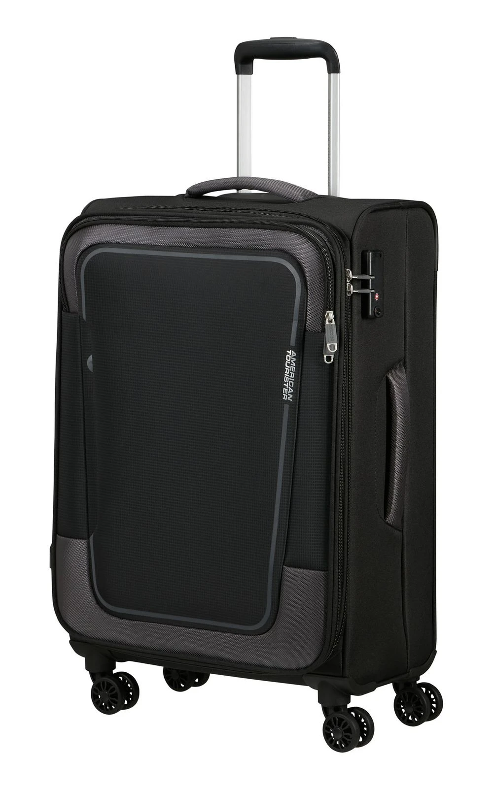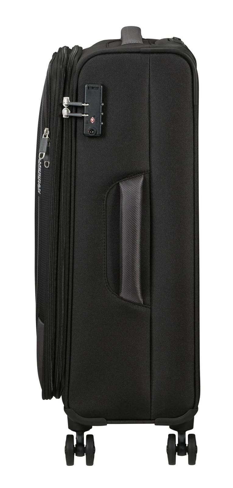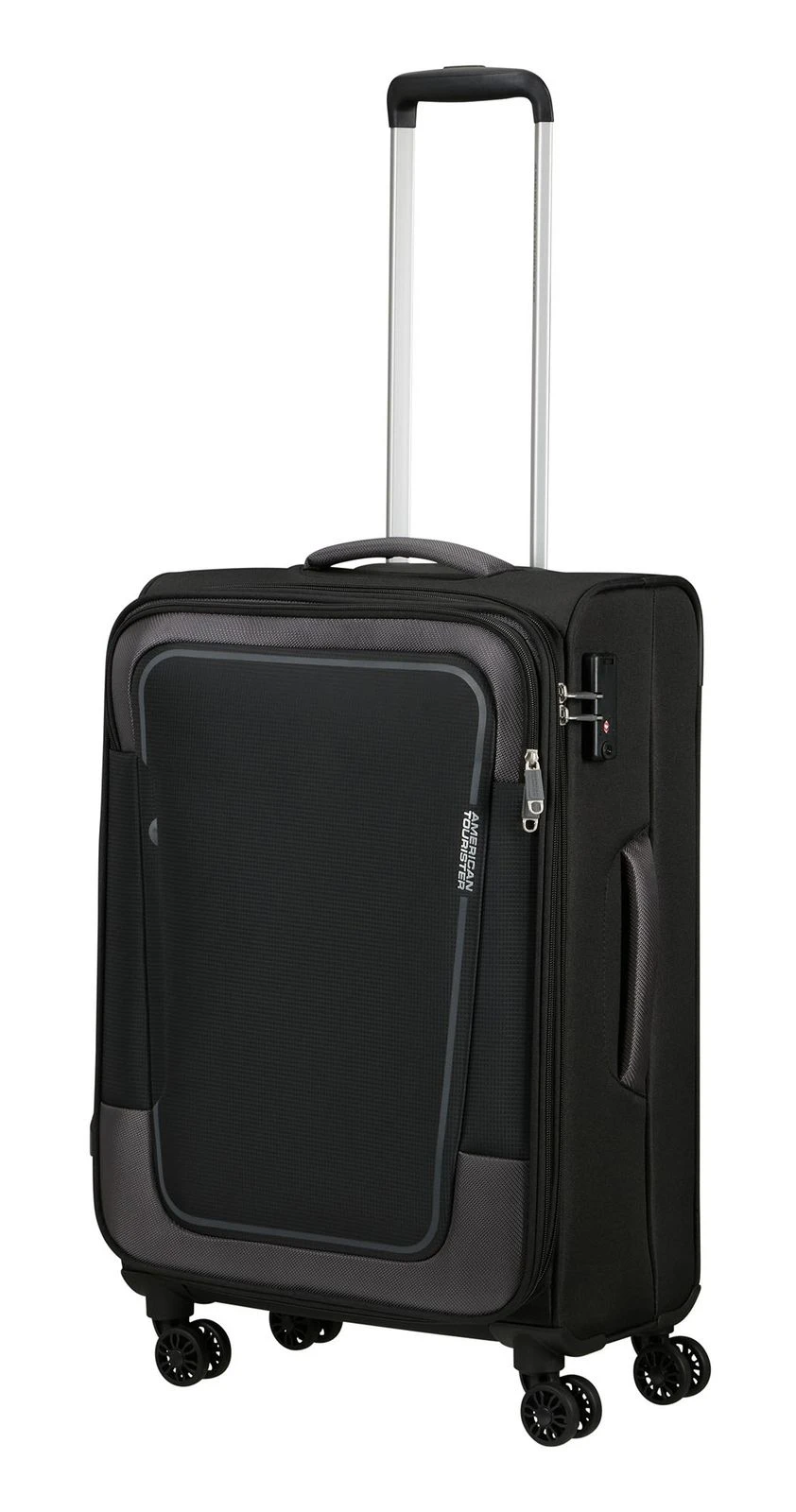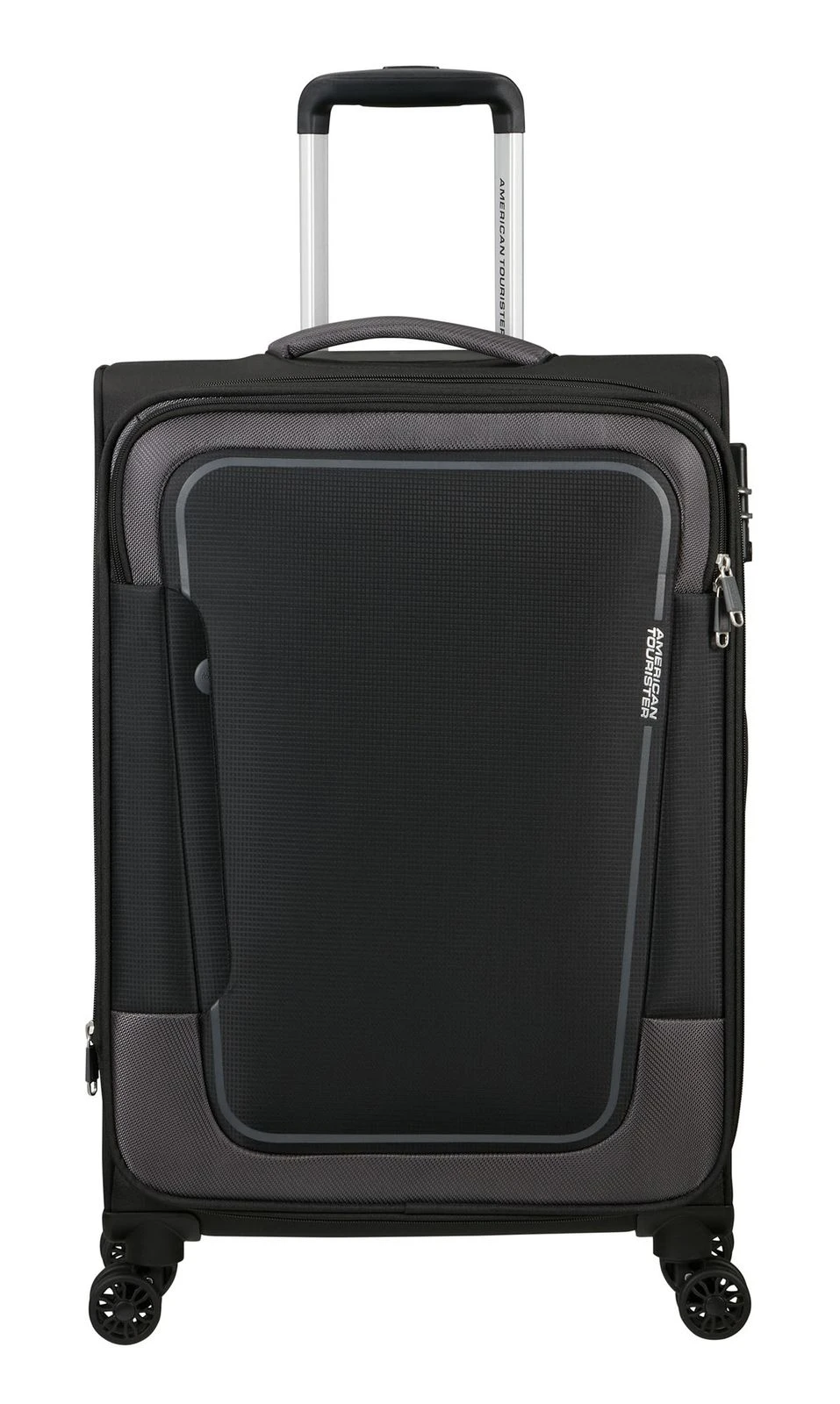 - Das American Tourister Logo ist gut sichtbar eingearbeitet