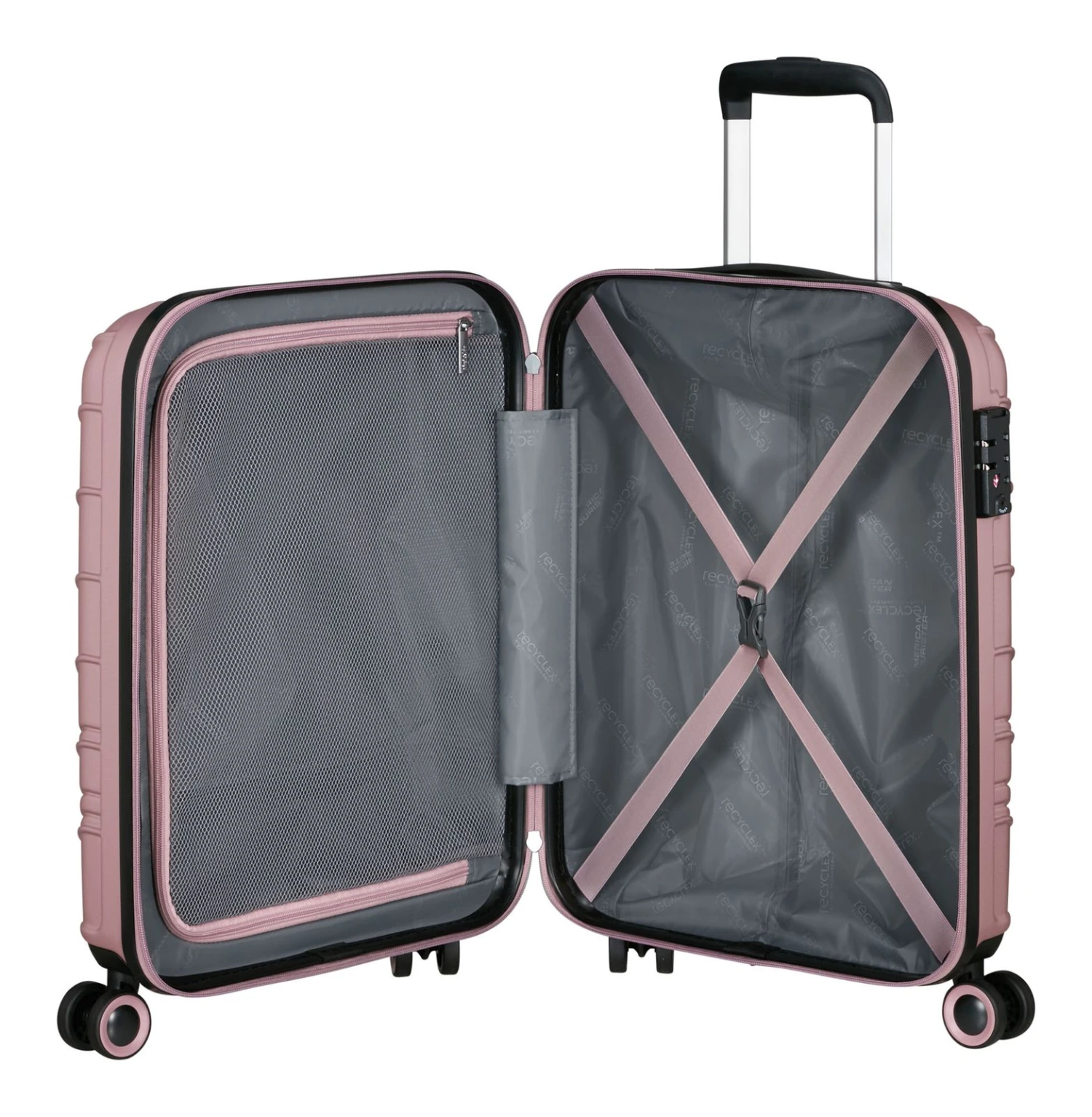 - Das American Tourister Logo ist gut sichtbar eingearbeitet