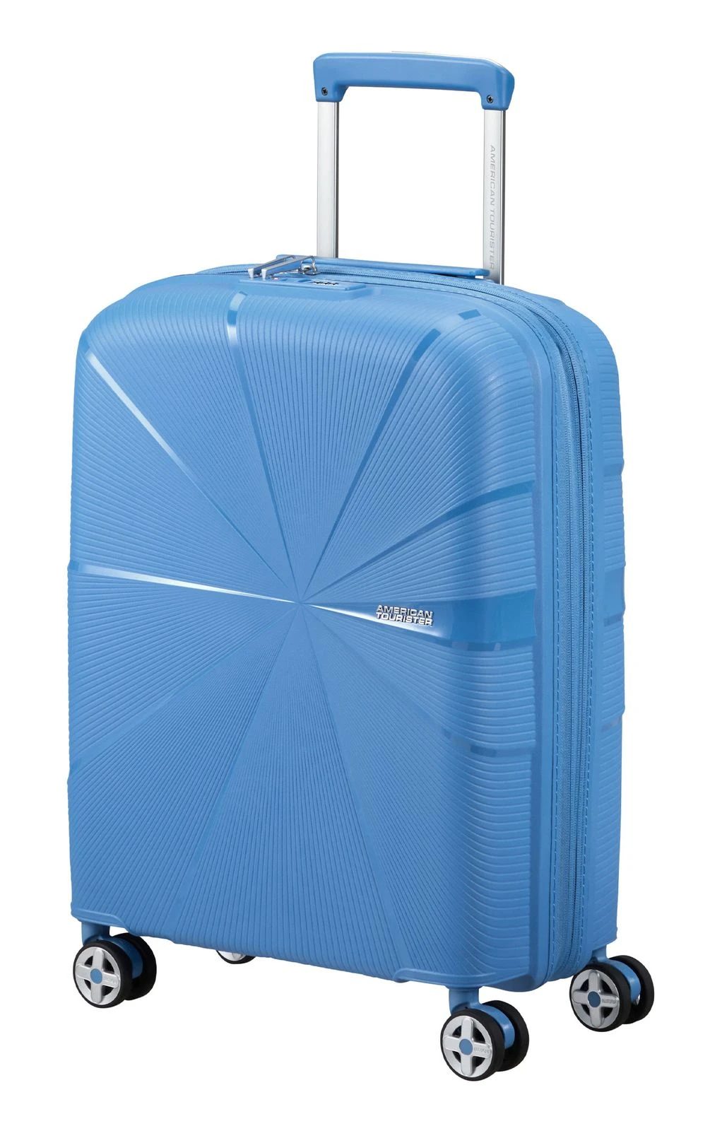 - Das American Tourister Logo ist gut sichtbar eingearbeitet