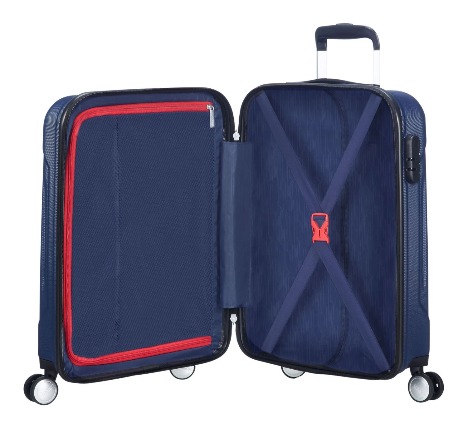 - Das American Tourister Logo ist gut sichtbar eingearbeitet