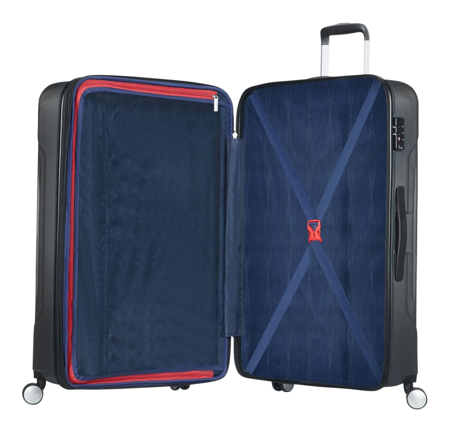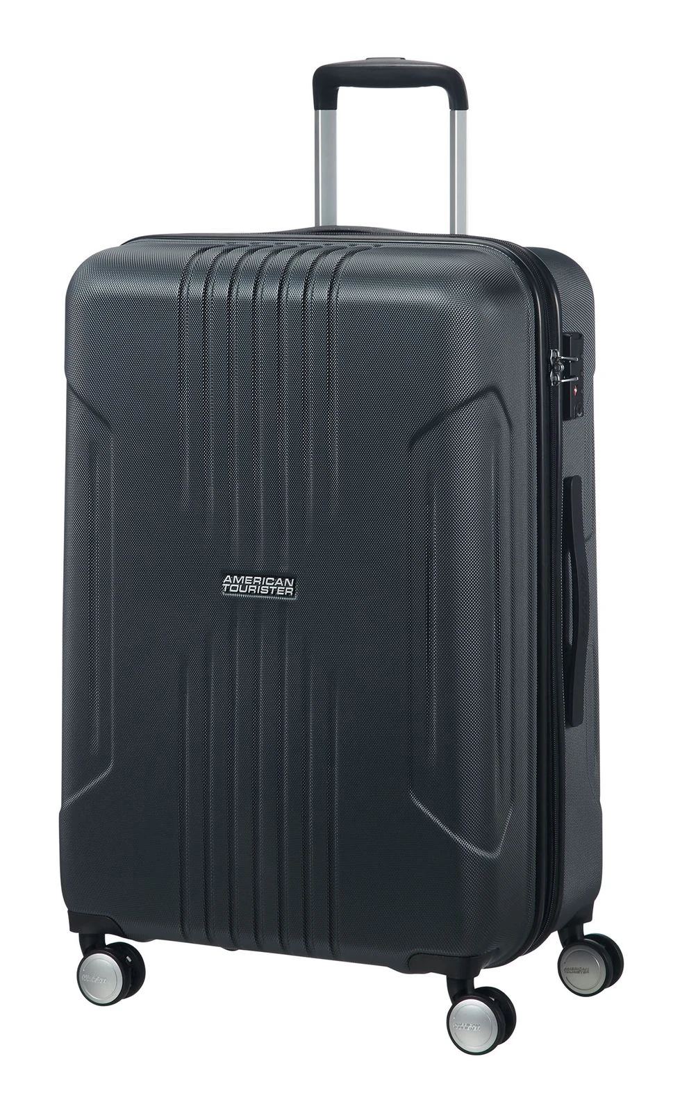 - Das American Tourister Logo ist gut sichtbar eingearbeitet